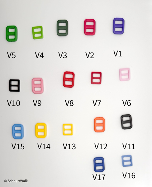 Nur für unsere 10 mm-Gurtbänder bieten wir farblich abgestimmte Verstellschieber an – denn bei aktiven Katzen wie bei deinen Spaziergängen zählt jeder Millimeter Komfort. Die Schieber ermöglichen eine präzise Anpassung der Gurtlänge und sorgen dafür, dass das Geschirr optimal sitzt. Bei den 15 mm-Bändern setzen wir auf einen schlichten, schwarzen Verstellschieber – harmonisch im Stil, maximal in der Funktion.